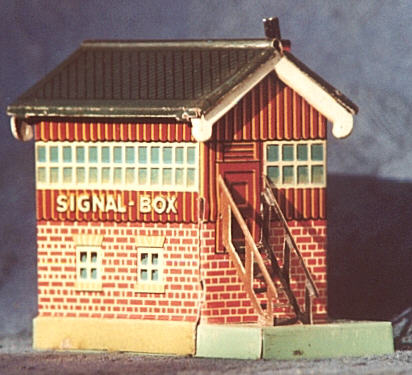 oben: Das Stellwerk trug für den englische Markt die Aufschrift "Signal Box" und gehörte ebenfalls zur Grundausstattung der Sets. Es ist etwa 7 cm hoch und für die 80 Jahre in einem fantastischen Zustand.