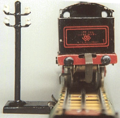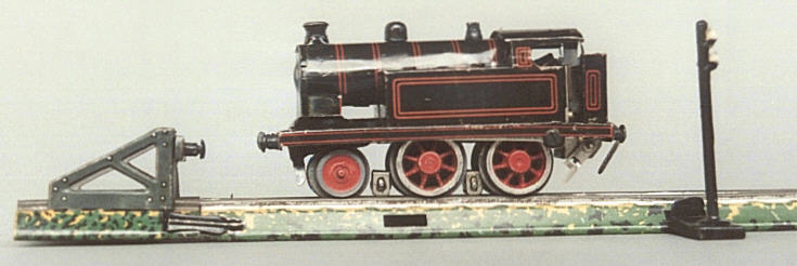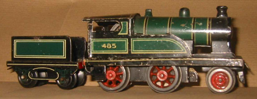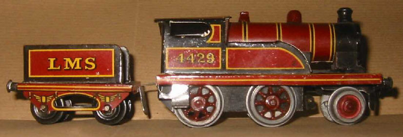 Die ersten Loks waren alle mit Uhrwerkantrieb versehen. Die kleinen Werke in den halb-Spur 0-Loks waren eine mechanische Revolution. Es gab Tenderloks und Schlepptender-Maschinen. Letztere wurden nie elektrisch angeboten, weil im Gehäuse der Platz für die Feldspule des Allstrom-Motors fehlte. Die gezeigte LMS-Variante mit der 513 am Tender ist eine der ersten überhaupt hergestellten Schlepptender-Loks in der 16,5mm Spur.