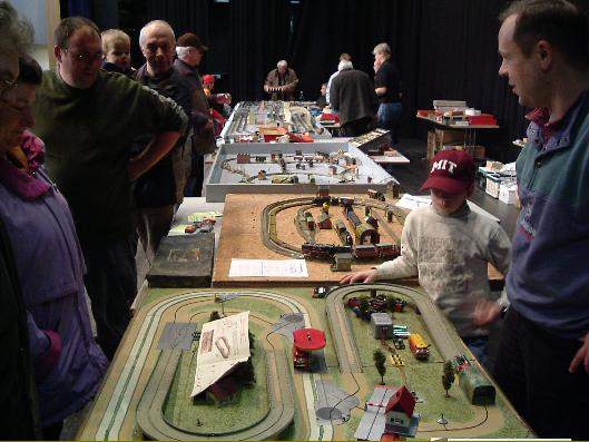 Gaggenau (20./21.11.2004) brachte die bisher größte Bandbreite an alten Eisenbahnen und Schuco Varianto. Links der Überblick über die vollen 12 Meter Anlagenlänge. Im Vordergrund die originale Schuco Varianto Schaufensteranlage als Überraschungsgast. Dahinter die Karl Bub Anlage wie bereits in Achern gezeigt. Dann die Bing Tischbahn und ganz hinten 6 Meter Trix und Märklin. Am Sonntag war statt Schuco und Karl Bub eine Mignon-Bahn zu Gast. Einige Besucher scheuten auch Anfahrten von mehreren hundert Kilometern nicht, um die Topraritäten einmal in Aktion zu erleben. Das Ereignis wurde lokal, in Fachzeitschriften und auf Homepages in Deutschland und England angekündigt.