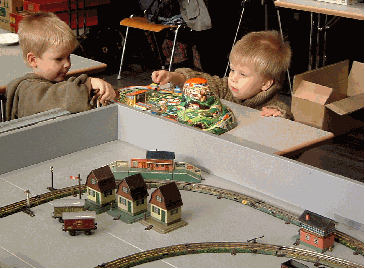 Oben rechts spielen die Jüngsten unermüdlich mit der Cable Car Bahn von Technofix.