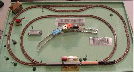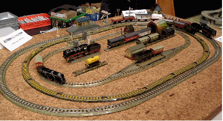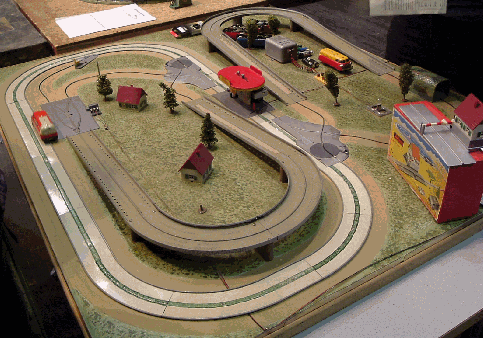 Die Karl Bub Anlage mit allen 3 damals hergestellten Produktlinien. Von innen nach außen: Ausweichbahn, Bing typische Modelle und Sonderklasse.