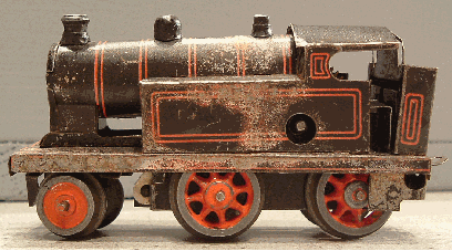 Unglaublich, aber wahr: Die Tenderlok der Bing 00 Tischbahn in Continental Livery und mit großem Uhrwerk !!! Jeff Carpenter hatte in seinem Buch über die Bing Tischbahn bereits vermutet, dass eine solche Lok eines Tages auftauchen könnte. Hier ist sie! Das einzige weltweit bisher bekannte Stück einer solchen Lokomotive. Und die auf unserer Anlage! Auch wenn der Zustand besser sein könnte, so stellt sie die bisher größte Rarität der Tischbahn dar.