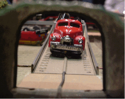 Die original Schuco Varianto Schaufensteranlage war für Händler bestimmt und diente der Verkaufsförderung. Eine solche Anlage wurde am Samstag vorgeführt. Die kleinen Blechautos drehten den ganzen Tag unermüdlich ihre Runden. Weitere Modelle fuhren an beiden Tagen auf der Großanlage zwischen den Blechzügen.