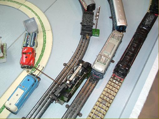 Da hatte es uns gepackt. Als ich mich mit meiner TTR Pytchley auf ein Wettrennen mit der Märklin Bullaugenlok einließ, war wohl die Vernunft kurzzeitig ausgeschaltet. Angefeuert von Rennbegeisterung (Dich hänge ich ab!), flog die Pytchley aus der Kurve. Klarer Sieg für den tieferen Schwerpunkt der Märklin Lok. Wahrscheinlich hätte ich sie mit dem 20/58 nass gemacht, aber das haben wir dann doch lieber gelassen. Am schnellsten war der Märklin Schienenzeppelin, der in echter Formel 1 Manier beschleunigte. So haben auch erwachsene Männer noch Spaß am Wettrennen und jeder von uns hat das schon mit seiner ersten Eisenbahn vor vielen Jahren gemacht, wenn die Erwachsenen damals nicht dabei waren.