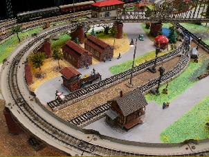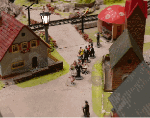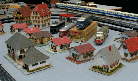 Unten links weitere Holzhäuser und die alten Märklin Triebwagen.