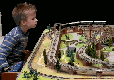 Oben die frisch gereinigte und restaurierte Märklin Schauanlage von 1964. Sie kam über einen Händler aus Norddeutschland zum Vorbesitzer und wurde 2008 von uns erworben. Nun erstrahlt sie wieder in originaler Bestückung. Sie ist die Anlage Nr.9 aus dem damaligen Gleisplanheft 0350. Links bedient Tobias unermüdlich die Billerbahn. Es gibt doch noch jungen Nachwuchs für die Modellbahn. Auch der Frechdachs unten hat sichtlich Spaß an den Schauanlagen, die man heute bei keinem Händler mehr zu sehen bekommt. Früher war das anders.