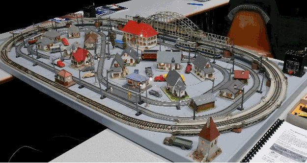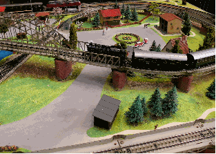 Unten Die 6 Meter Anlage, die nicht fehlen darf mit Trix Express und altem Märklin.