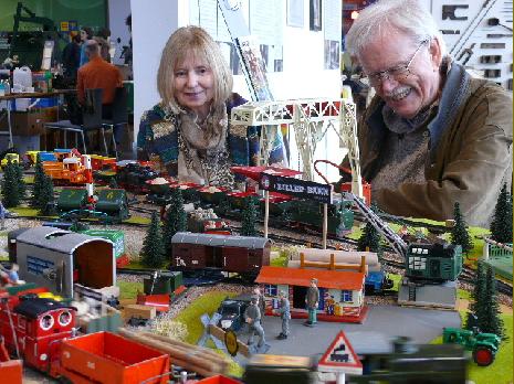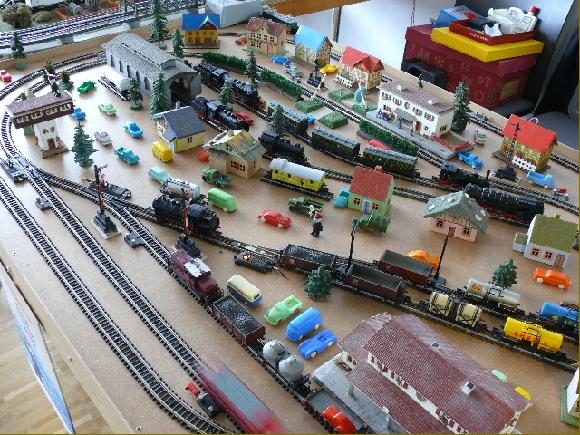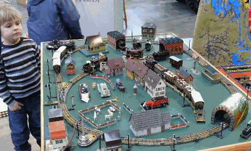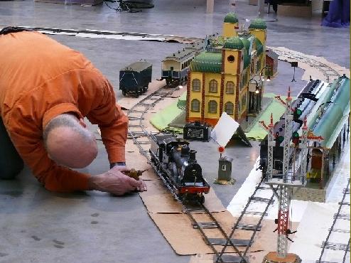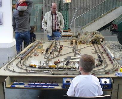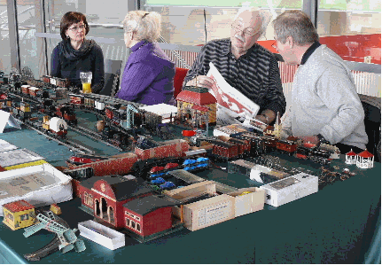 Während der Nachwuchs die 1956er Märklinanlage vorführt, führen Mann und Frau Fachgespräche und Horst ölt seine Spur IV Bahn zum ersten Mal bei uns in Gaggenau.