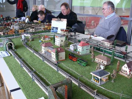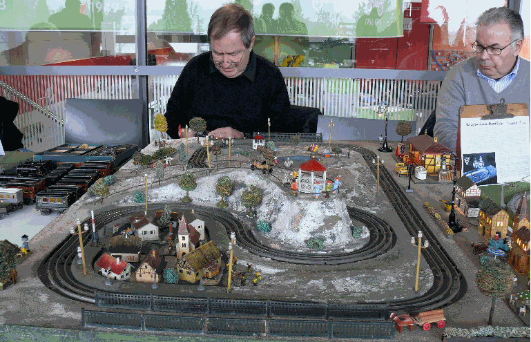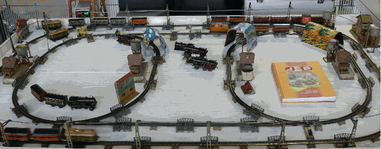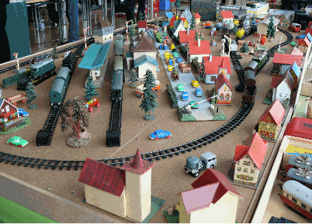 Auf dieser Seite sehen Sie ausgewählte Bilder der Vorführung 2013. 2013 waren wir am 23. und 24.2. im Museum zu Gast. Wir versuchen immer, etwa 2 Wochen Abstand zur hier sehr populären Fastnacht zu haben. Der herausragende Teilnehmer war 2013 sicher die Märklin Liliput Bahn, von der es nur noch sehr wenige erhaltene Exemplare gibt. Hier war gleich eine komplett original erhaltene Schauanlage aus der Zeit nach dem ersten Weltkrieg zu sehen - eine bisher einmalige Attraktion. So waren wir wieder mal die ersten Veranstalter überhaupt, die eine solche Top-Rarität öffentlich und in Funktion zeigen konnten. Eine weitere Neuerung war die Lego-Bahn von Maximilian, die sofort zum Publikumsliebling wurde. Grund genug sie dann 2014 in erweiterter Form und zusammen mit der noch älteren Batterie - Legobahn der 70er Jahre zu kombinieren (erkennbar an den blauen Gleisen). Für mich als Vater natürlich besonders schön, den Junior beim Basteln, Bauen und Spielen an der Seite zu haben. An beiden Veranstaltungen war unser Rainer endlich wieder dabei und Dieter zeigte die Beckh-Eisenbahn, die sein Vater als Unternehmer produzierte und verkaufte. Ende der 60er Jahre kam das Ende dieser schönen einfachen Uhrwerkbahn.