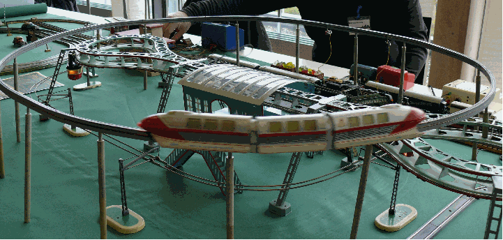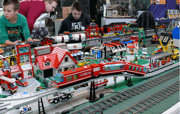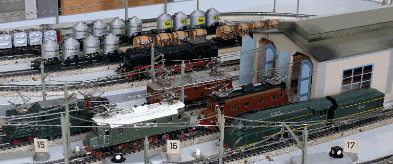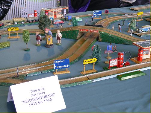 Besonders stolz sind wir auf den konstanten Zulauf der jungen Generation, woran sicher die vorsichtige Eingliederung heutiger und zeitgemäßer Eisenbahn (wie etwa der Legobahn, Faller Hit Train, Playmobil) einen guten Anteil hatte. Kern wird weiter die alte Tischeisenbahn bleiben, aber mit eine wachen Auge auf neuere Formen der Modelleisenbahn ohne digital zu werden. Denn diesen Firlefanz braucht man nicht zum Eisenbahnspielen, wie man an unseren vollautomatischen Schauanlagen von Märklin sehen kann. Im Gegenteil: Der „Rückschritt" zur Uhrwerkbahn hat viel Erstaunen und Beifall ausgelöst - muss man doch endlich wieder arbeiten, damit was fährt! Genießen Sie die folgenden Bilder, die wirklich nur einen Hauch dessen zeigen, was dort wirklich zu sehen war.
