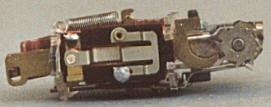 oben: Der 790er Umschalter wurde kurz nach dem Krieg nur in die T790 und RS790 eingebaut. Er ist ein reiner Handumschalter und wirkt zweipolig. Daher konnte eine Wicklung am Stator des Motors entfallen. Eine reine Sparlösung für den preiswerten Einstieg der jungen Miniaturbahner. Er ragt oben aus dem Dach (RS790) bzw. am Kessel (T790) aus dem Gehäuse heraus und wird nach vorne bzw. hinten gelegt. In Mittelstellung steht die Lok mit brennendem Licht.