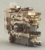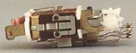 oben: Zur Ergänzung noch einer von vielen Sondertypen. Dieser steckt z.B. im TEE Triebwagen 3071 und sorgt für den Lichtwechsel. Die vielen Kontaktfahnen müssen exakt eingestellt sein, dann funktioniert alles sehr zuverlässig. Der Stern am Umschalter war inzwischen auch aus Kunststoff. Mit Unterbrecher an der Oberseite "bocksprungsicher". Der Schaltvorgang bei abgenommenem Gehäuse ist interessant zu beobacten.