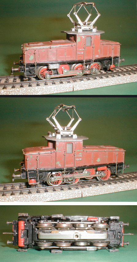 Die Zugleistung ist durch das relativ geringe Gewicht und die alten durchsichtigen Plastik – Haftreifen auf 5 kleinere oder 2 bis 3 größere Wagen beschränkt, was aber dem Verwendungszweck des Originals der E63 als Rangier – und leichte Güterzuglok durchaus genügt. Endlose Güterzüge bewege man besser stilgerecht mit einem 3015 Krokodil. Die alten Haftreifen waren bis etwa 1964 erhältlich und wurden dann durch die heute noch bekannten Gummireifen ersetzt. Auch wenn die alten Haftreifen mit der Zeit hart werden und damit die Zugleistung der Lok sinkt, gelten sie immer noch als wertsteigernd bei Sammlermodellen. Der Koll – Katalog sagt etwa DM 400,- für diese braune Variante. Leider ist sie aus Plastik, dafür aber auch schön unmaßstäblich. Märklin der 50er Jahre eben...