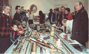 Durchgeführt werden diese Aktionen von unserer „Fahrgemeinschaft Tischeisenbahn", einer Interessengemeinschaft zum Vorführen alter Tischbahnen der Spur 00/H0. Es scheint die einzige Vorführung zu sein, bei der die Legenden der Spur 00 von Bing Tischbahn, Trix Express, TTR und Märklin und manchmal auch Bub oder Distler auf einer Anlage zu sehen sind. Während man in der Spur 0 schon seit vielen Jahren sogenannte Fahrertreffen organisiert, sind die kleinen Spurweiten deutlich seltener im Fahrbetrieb zu sehen. Zumindest was die alten Modelle vor 1960 anbelangt.
