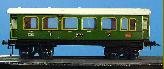 Links ein Packwagen der 1936er Serie für den englischen Markt. Hier sind die zusätzlichen Trittbretter der Packwagen gut sichtbar. Sie wurden mit eingelascht.